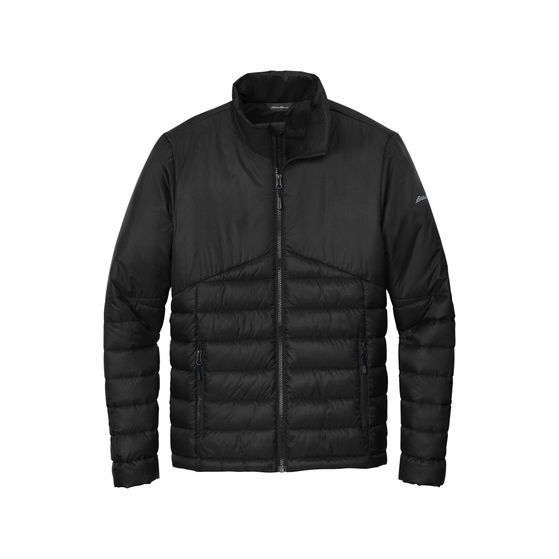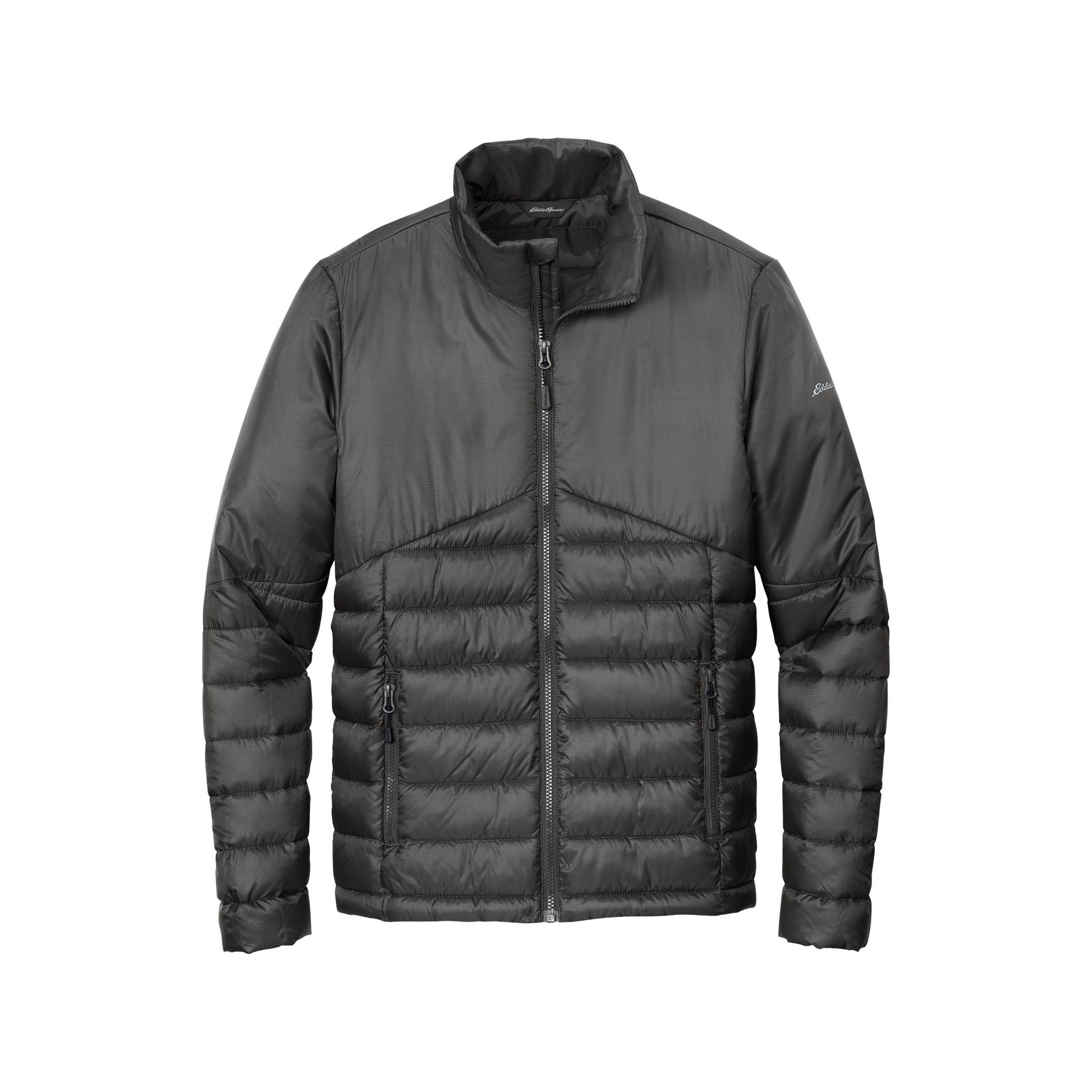 Minimal bulk meets maximized performance in this quilted jacket that is built for your cold-weather adventures. Exposed, molded zippers with Eddie Bauer logo pulls. Zippered hand pockets. Elastic at cuffs. Adjustable locking drawcord hem. Contrast Eddie Bauer heat transfer logo on left sleeve. Made of 100% polyester shell and lining. 5-ounce, 100% polyester fill. Durable water-repellent (DWR) finish.